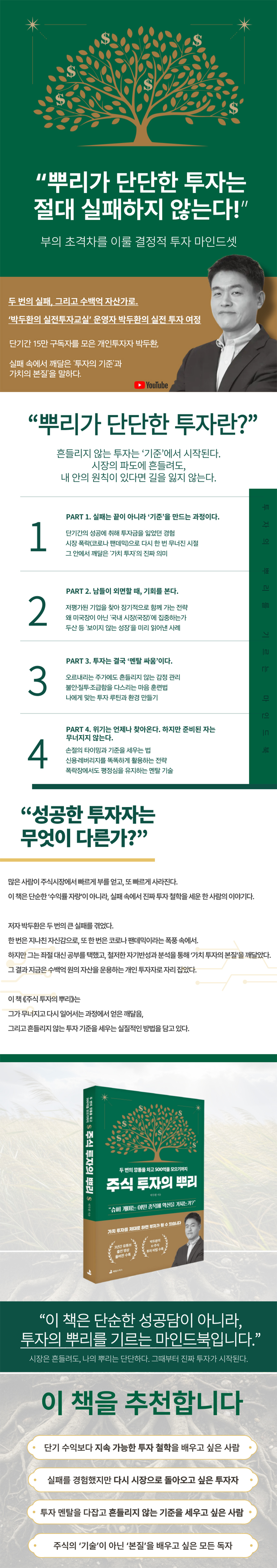 그러한 삶의 가치를 더 많은 이들과 나누고자 2025년 5월부터 유튜브 채널 ‘박두환의 실전투자교실’을 개설해 그동안 시행착오를 거치며 확립한 자신만의 투자 철학과 노하우를 공유하고 있다. 앞으로도 뜻을 함께하는 개인 투자자들과 여러 접점을 통해 소통하며, 단단한 뿌리를 가진 부를 이루는 길에 대한 생각을 나누고 싶다.